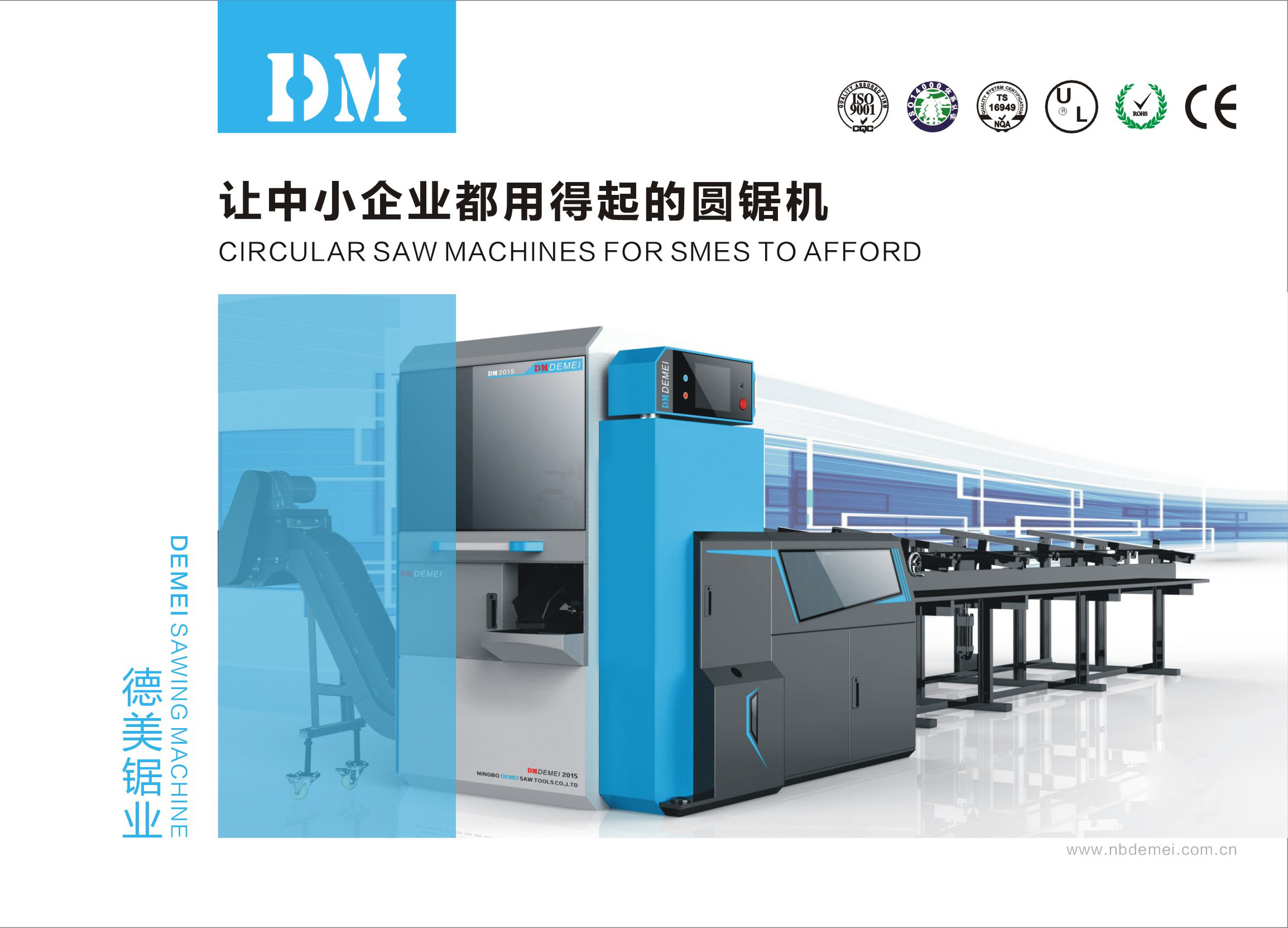 德厚物美、誠(chéng)信第一、技術(shù)至上是寧波德美的真實(shí)寫(xiě)照! 我們堅(jiān)持“以高尚人品打造行業(yè)精品,憑技術(shù)創(chuàng)新鑄就世界品牌”的企業(yè)理念,立志打造一個(gè)最專(zhuān)業(yè)的金屬冷鋸切裝備制造基地!寧波德美,從來(lái)以鑄造精品、不斷創(chuàng)新為己任,立志以己綿薄之力助力民族工業(yè)的騰飛。本公司坐落于東海之濱,長(zhǎng)江三角洲南翼之歷史文化名城寧波,距離以“東方大港”之稱稱譽(yù)國(guó)內(nèi)外的北侖港僅10余里, 交通便利、環(huán)境優(yōu)美。是一家專(zhuān)業(yè)研發(fā)、制造金屬冷鋸切成套設(shè)備解決方案的新興高新技術(shù)型生產(chǎn)企業(yè),自主研發(fā)生產(chǎn)的全自動(dòng)泛用型高速金屬圓鋸機(jī)等金屬加工裝備廣泛用于國(guó)家重點(diǎn)支持的航空航天、核能、機(jī)電、船舶、汽車(chē)等領(lǐng)域。德美出品,必屬精品。主要產(chǎn)品有HSS及TCT高速切管機(jī)、高速切棒機(jī)、各種全(半)自動(dòng)有色金屬切割機(jī)等,并針對(duì)客戶特殊需求提供從來(lái)料到成品的一條龍解決方案,另承接各種進(jìn)口鋸切設(shè)備機(jī)構(gòu)及控制改造。設(shè)廠至今,沒(méi)有任何困難能阻擋我們,在攻克一個(gè)又一個(gè)技術(shù)難關(guān)之后我們比以往更自信更堅(jiān)定,但同時(shí)又嚴(yán)苛地自我期望生產(chǎn)技術(shù)能日益精進(jìn),不斷地求新、求精,凝聚專(zhuān)業(yè)的研發(fā)團(tuán)隊(duì),創(chuàng)造廣大中國(guó)企業(yè)能用得起的尖端產(chǎn)品。因?yàn)橛械旅?,您的工廠從此多了一種選擇;只要您愿意,您可一步登天,將世界最先進(jìn)的技術(shù)握在手中!