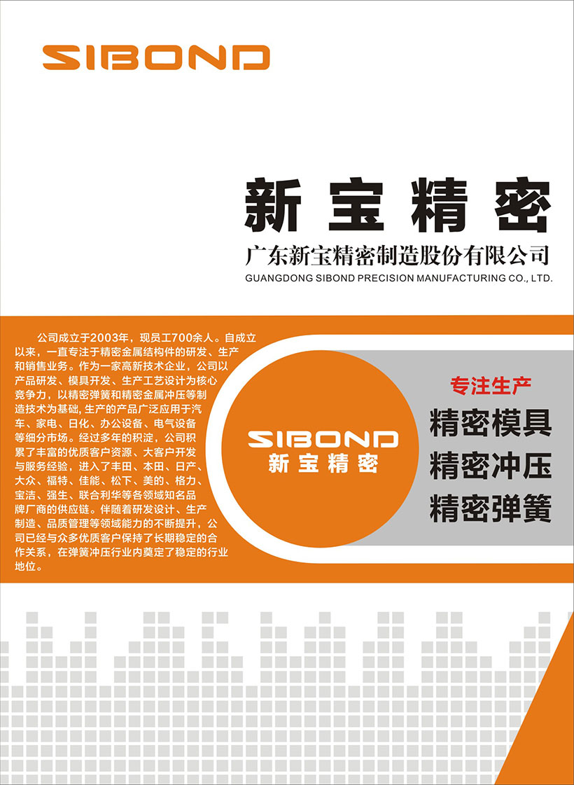 公司成立于2003年,自成立以來(lái),一直專注于精密金屬結(jié)構(gòu)件的研發(fā)、生產(chǎn)和銷售業(yè)務(wù)。作為一家高新技術(shù)企業(yè),公司以產(chǎn)品研發(fā)、模具開(kāi)發(fā)、生產(chǎn)工藝設(shè)計(jì)為核心競(jìng)爭(zhēng)力,以精密彈簧和精密金屬?zèng)_壓等制造技術(shù)為基礎(chǔ),生產(chǎn)的產(chǎn)品廣泛應(yīng)用于汽車(chē)、家電、日化、辦公設(shè)備、電氣設(shè)備等細(xì)分市場(chǎng)。經(jīng)過(guò)多年的積淀,公司積累了豐富的優(yōu)質(zhì)客戶資源、大客戶開(kāi)發(fā)與服務(wù)經(jīng)驗(yàn),進(jìn)入了豐田、本田、日產(chǎn)、大眾、福特、佳能、松下、美的、格力、寶潔、強(qiáng)生、聯(lián)合利華等各領(lǐng)域知名品牌廠商的供應(yīng)鏈。伴隨著研發(fā)設(shè)計(jì)、生產(chǎn)制造、品質(zhì)管理等領(lǐng)域能力的不斷提升,公司已經(jīng)與眾多優(yōu)質(zhì)客戶保持了長(zhǎng)期穩(wěn)定的合作關(guān)系,在彈簧沖壓行業(yè)內(nèi)奠定了穩(wěn)定的行業(yè)地位。