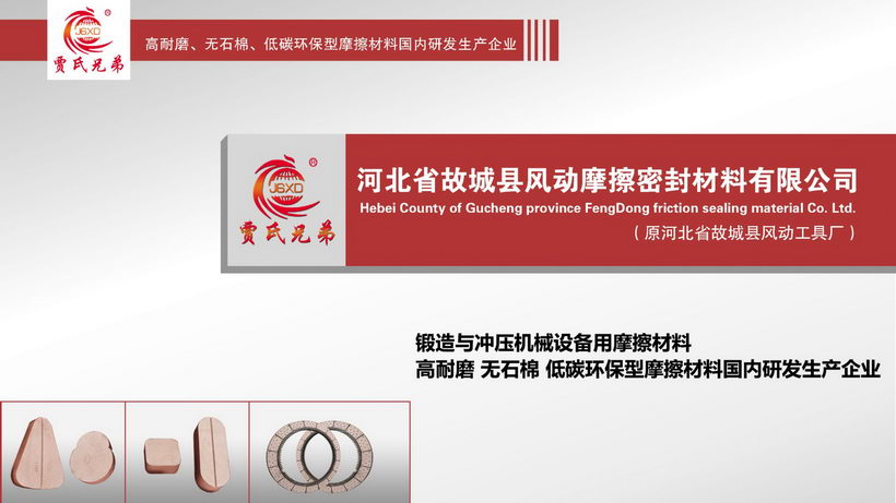 我公司始建于一九八四年,位于河北省東南部,南與山東北運(yùn)河隔河相望,東與山東德州市接壤。廠址故城縣城北工業(yè)區(qū),緊靠邢德公路,占地面積3000余平方米,職工80余人,技術(shù)人員15人,固定資產(chǎn)180余萬元,專用設(shè)備10臺套。是專業(yè)生產(chǎn)鍛壓設(shè)備、沖壓設(shè)備摩擦塊、摩擦片的配套廠家。部分產(chǎn)品并出口國外,特別是高耐磨、低磨耗、無石棉、環(huán)保型摩擦塊受到國內(nèi)外用戶的認(rèn)可。