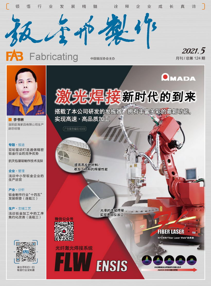 《鈑金與制作》雜志是中國鍛壓協(xié)會(huì)主辦的目前國內(nèi)惟一一本面向鈑金制作、管型線材加工行業(yè)的綜合性高端雜志。憑借中國鍛壓協(xié)會(huì)多年服務(wù)鈑金和管型線材行業(yè)的優(yōu)勢(shì),努力搭建供應(yīng)商與用戶企業(yè)間的信息平臺(tái),做好政府、高校、科研院所及企業(yè)間溝通的橋梁。