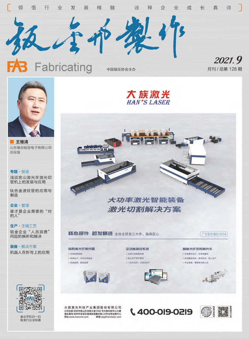 《鈑金與制作》雜志是中國鍛壓協(xié)會主辦的目前國內(nèi)惟一一本面向鈑金制作、管型線材加工行業(yè)的綜合性高端雜志。憑借中國鍛壓協(xié)會多年服務(wù)鈑金和管型線材行業(yè)的優(yōu)勢,努力搭建供應(yīng)商與用戶企業(yè)間的信息平臺,做好政府、高校、科研院所及企業(yè)間溝通的橋梁。