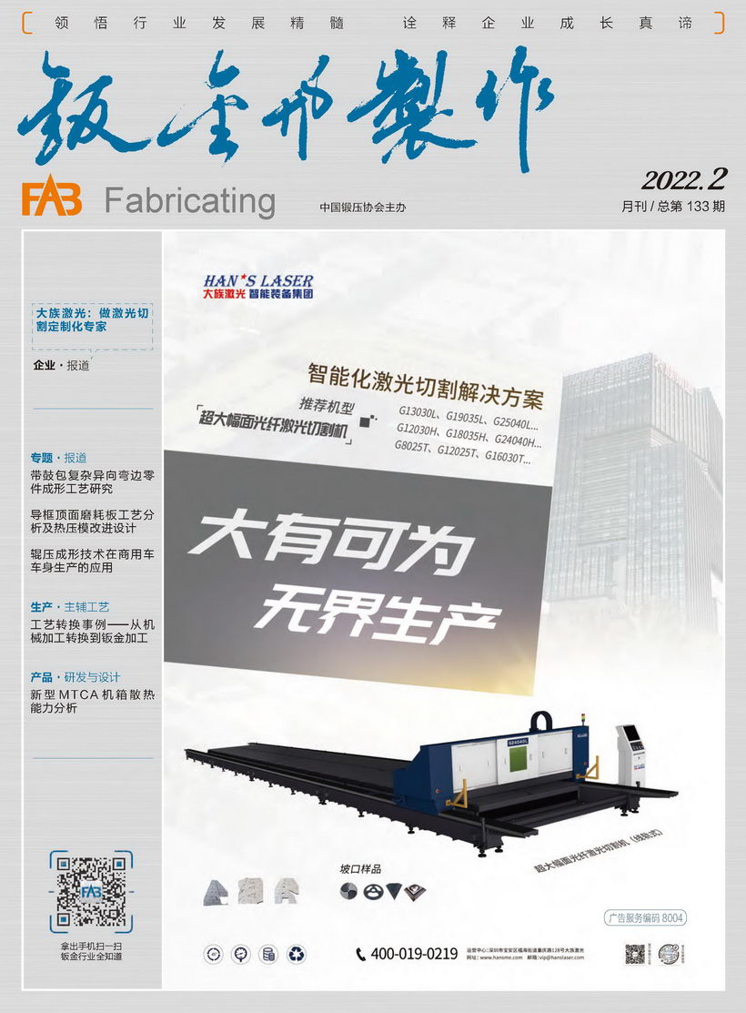 《鈑金與制作》雜志是中國鍛壓協(xié)會主辦的目前國內(nèi)惟一一本面向鈑金制作、管型線材加工行業(yè)的綜合性高端雜志。憑借中國鍛壓協(xié)會多年服務(wù)鈑金和管型線材行業(yè)的優(yōu)勢,努力搭建供應(yīng)商與用戶企業(yè)間的信息平臺,做好政府、高校、科研院所及企業(yè)間溝通的橋梁。