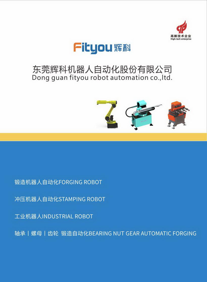 東莞輝科機(jī)器人自動(dòng)化股份有限公司創(chuàng)建于2008年4月,是國(guó)家高新技術(shù)企業(yè)。公司致力于鍛壓機(jī)器人自動(dòng)化產(chǎn)品的研發(fā)、制造與銷售,為鍛壓企業(yè)解決用工難、效率低等迫切問題,協(xié)助鍛壓企業(yè)實(shí)現(xiàn)自動(dòng)化、智能化鍛造。