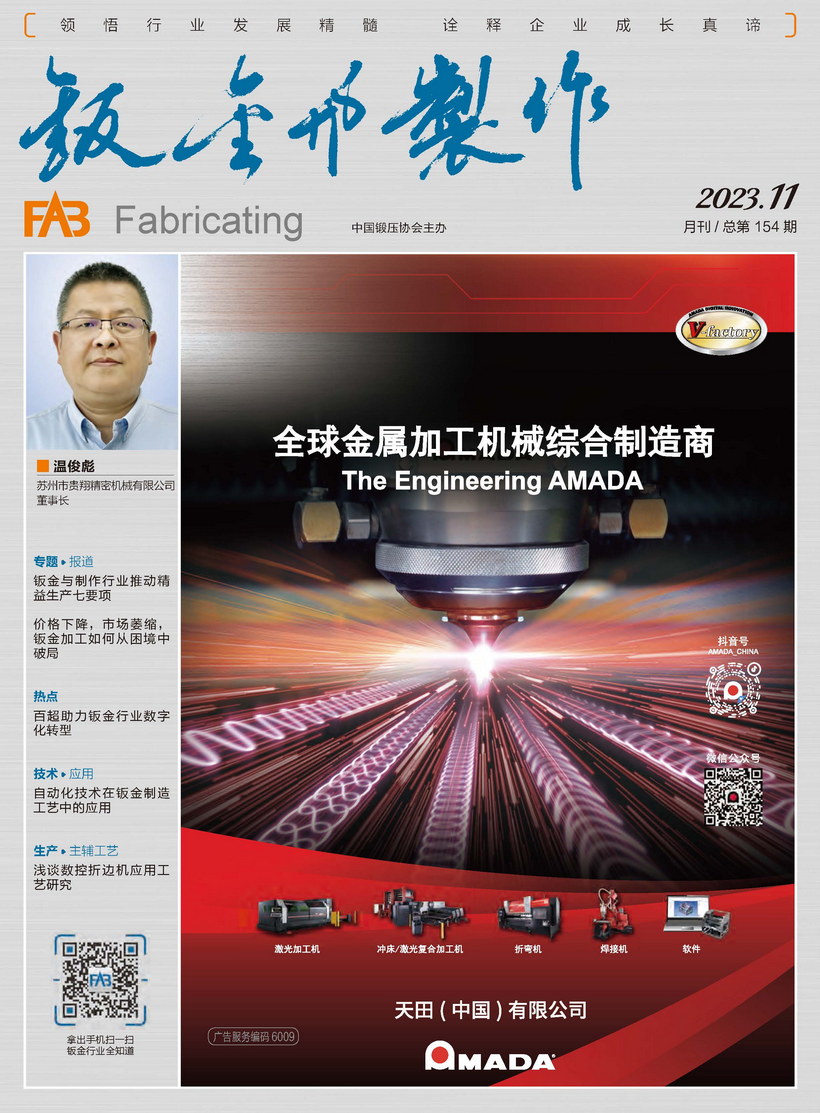 《鈑金與制作》雜志是中國鍛壓協(xié)會主辦的目前國內(nèi)惟一一本面向鈑金制作、管型線材加工行業(yè)的綜合性高端雜志。憑借中國鍛壓協(xié)會多年服務鈑金和管型線材行業(yè)的優(yōu)勢,努力搭建供應商與用戶企業(yè)間的信息平臺,做好政府、高校、科研院所及企業(yè)間溝通的橋梁。