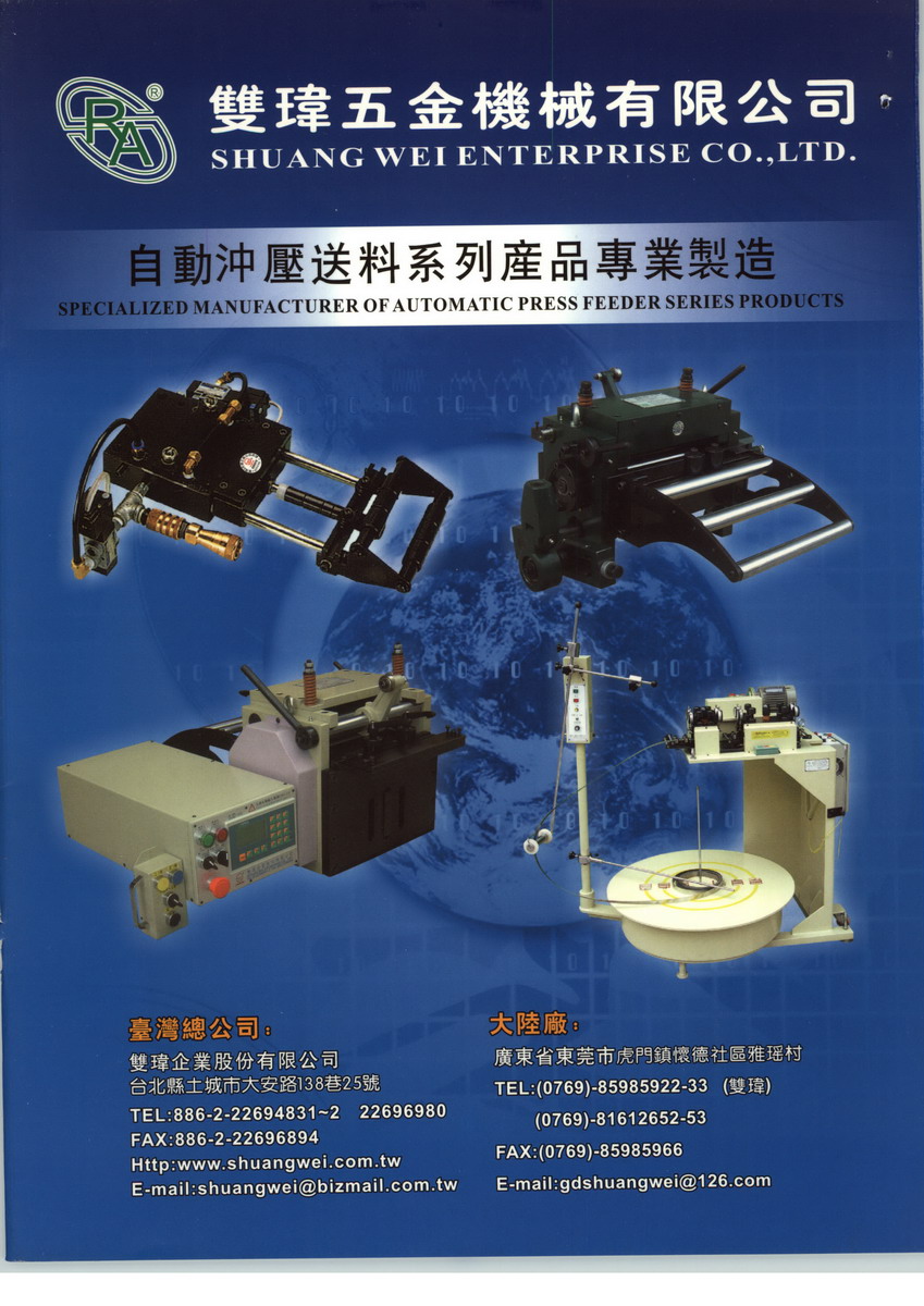 東莞市雙瑋五金機(jī)械有限公司 位于廣東 東莞市,主營(yíng) 空氣自動(dòng)送料機(jī)、高速滾輪送料機(jī)、NC滾輪送料機(jī)、精密整平機(jī)、各種料架、攻牙機(jī)等、采購(gòu):五金配件、電機(jī)、材料 等。公司秉承“顧客至上,銳意進(jìn)取”的經(jīng)營(yíng)理念,堅(jiān)持“客戶**”的原則為廣大客戶提供優(yōu)質(zhì)的服務(wù)。歡迎惠顧!