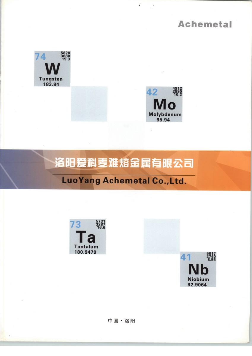 洛陽愛科麥難熔金屬有限公司 位于河南省洛陽市洛新工業(yè)園區(qū),廠區(qū)占地15畝?,F(xiàn)有職工86人。專業(yè)生產(chǎn)加工鎢、鉬及其它難熔金屬材料和制品。公司年產(chǎn)鎢鉬材料及加工產(chǎn)品100噸。公司響應(yīng)國家產(chǎn)業(yè)政策,憑借專業(yè)的技術(shù)工人、精良的生產(chǎn)設(shè)備,選用優(yōu)質(zhì)鎢鉬原料,通過燒結(jié)、鍛造、軋制、機(jī)加工等工藝過程,為客戶提供優(yōu)良品質(zhì)的鎢鉬產(chǎn)品。產(chǎn)品百分之六十出口美國、德國、日本等十幾個(gè)國家和地區(qū)。另外,部分產(chǎn)品被國內(nèi)著名航天、航空、有色金屬研究院所選用.