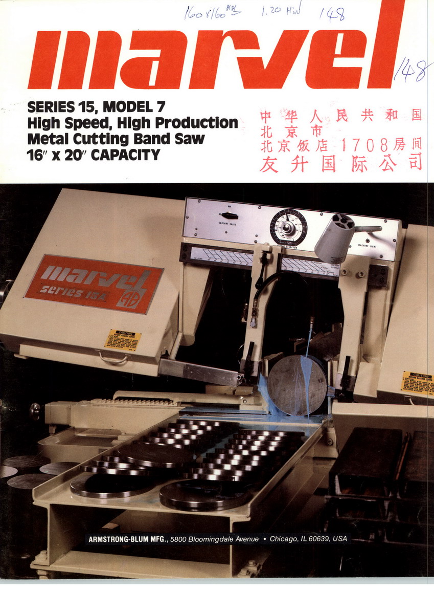 Marvel Manufacturing Company, Inc. offers a complete line of metal cutting saws and ironworkers under our MARVEL and SPARTAN trademarks. Marvel introduced the first vertical tilt-frame band saw in 1917 and remains the leader in the vertical tilt frame market. Our Marvel line of vertical saws ranges from the single cut universal Series 8 to our fully automatic programmable Touch Tech models with miter cutting up to 60 degrees. Our Spartan band saw line features both hinge and dual column band saw designs in capacities from 12 to 60 inches as well as a complete line of plate saws and contour saws. The Spartan brand name also includes high production thin kerf carbide circular saws and our Spartan Ironworkers which are available in capacities from 50 to 180 tons.