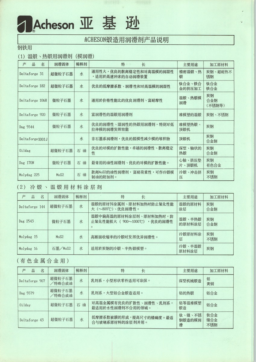 Acheson Deltaforge, Deltacast and Deltaglaze lubricants, release agents and specialized protective coatings ensure cleaner casting and forging, improved surface finish and enhanced protection from the effects of thermal fatigue. Acheson provides customers with total solutions that efficiently address both application and lubrication needs - and increase automation and productivity.Energy Storage Coatings Acheson DAG offers a complete product line of high quality graphite and carbon coatings and dispersions for today's electronics and energy storage devices.