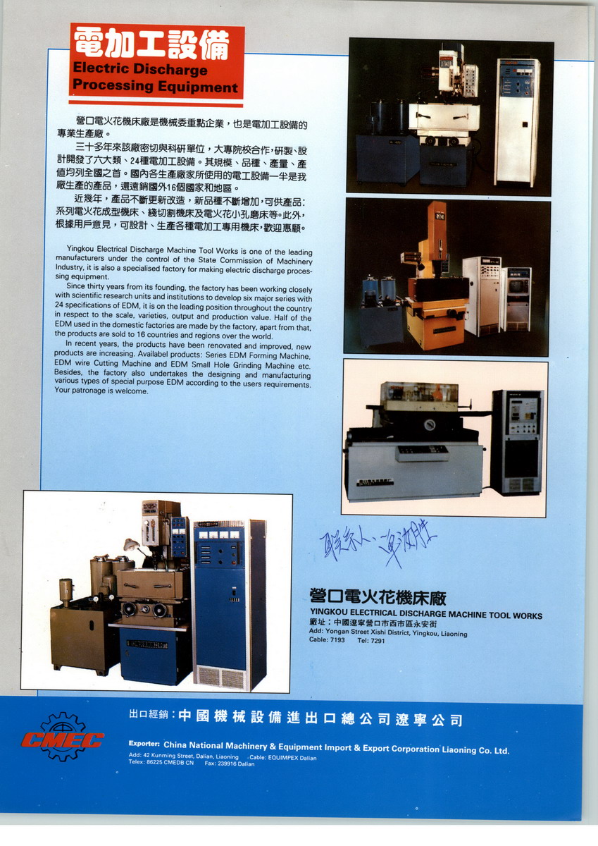 營口北方電火花機床廠位于美麗的海濱城市--遼寧沿海產(chǎn)業(yè)基地營口。是原機械工業(yè)部重點企業(yè)——我國最早開發(fā)研制電加工(電脈沖)機床的營口電火花機床廠改制而成。匯聚了一大批電加工行業(yè)的機械、電器高級工程技術(shù)人才,積多年的電加工機床的研制、開發(fā)、生產(chǎn)的理論和實踐經(jīng)驗,根據(jù)用戶的實際需求,不斷開發(fā)新產(chǎn)品?,F(xiàn)已在遼寧、河北、山東、浙江、四川、陜西、等省市設(shè)立辦事處,并擁有覆蓋東北、華北、華中、華東、西北、西南的全國性的渠道體系。專業(yè)的售后服務(wù)隊伍,常年跟蹤產(chǎn)品的使用與維護。研發(fā)實力是一個公司的核心競爭力。我廠自成立以來,一直致力于電加工產(chǎn)品的研發(fā)工作,組建了電加工工藝實驗室和改造車間。先后完成了硬質(zhì)合金電火花加工、陶瓷合金電火花加工、金剛石高速切割加工技術(shù)研究等,取得了良好的加工效果,在電加工技術(shù)領(lǐng)域取得多項領(lǐng)先成果。目前營口北方自主研發(fā)、生產(chǎn)的電火花成型機、數(shù)控電火花線切割機床,已經(jīng)銷往全國二十六個省、市、自治區(qū),并出口世界各地。