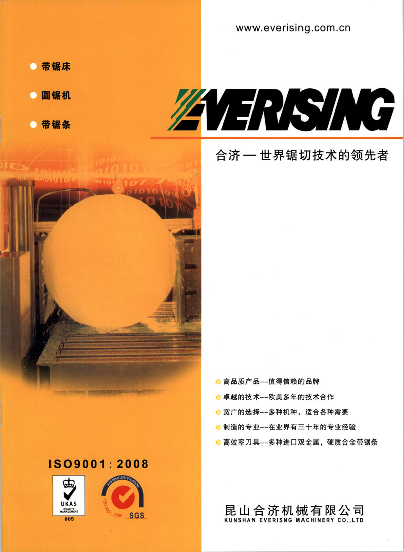 “EVERISING” 生產(chǎn)的帶鋸床作為世界著名品牌之一, 每年參加美國(guó)芝加哥IMTS、歐洲EMO、中國(guó)CIMT、Aluminium China 中國(guó)國(guó)際鋁工業(yè)展等諸多展覽會(huì),獲得國(guó)際ISO-9001和CE認(rèn)證。 產(chǎn)品自設(shè)計(jì)﹑制造﹑銷售至售后服務(wù)完全按照ISO-9001的標(biāo)準(zhǔn)與原則進(jìn)行,產(chǎn)品亦充分考慮到操作的安全性與方便性及機(jī)械性能的高精度與高效率。
