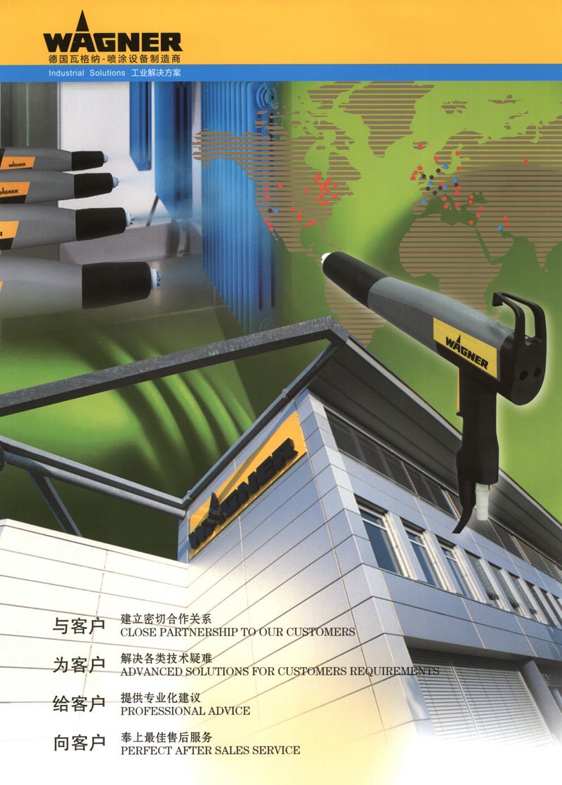 隨著集團(tuán)公司在中國(guó)業(yè)務(wù)的迅速擴(kuò)張,瓦格納爾集團(tuán)于1998年在上海建立了全資子公司,瓦格納爾噴涂設(shè)備(上海)有限公司,為國(guó)內(nèi)飛速發(fā)展的涂裝行業(yè)帶來(lái)了嶄新的技術(shù)和全面的服務(wù)。上海公司設(shè)有實(shí)驗(yàn)室、維修中心及物流中心,能為客戶提供專業(yè)的技術(shù)培訓(xùn)、及時(shí)的物流配送、專業(yè)的安裝調(diào)試和優(yōu)質(zhì)的售后服務(wù)。目前公司已在北京、廣州、重慶設(shè)立分公司,并正在全國(guó)各地組建代理商網(wǎng)絡(luò),以求為客戶提供優(yōu)質(zhì)的本地化服務(wù)。