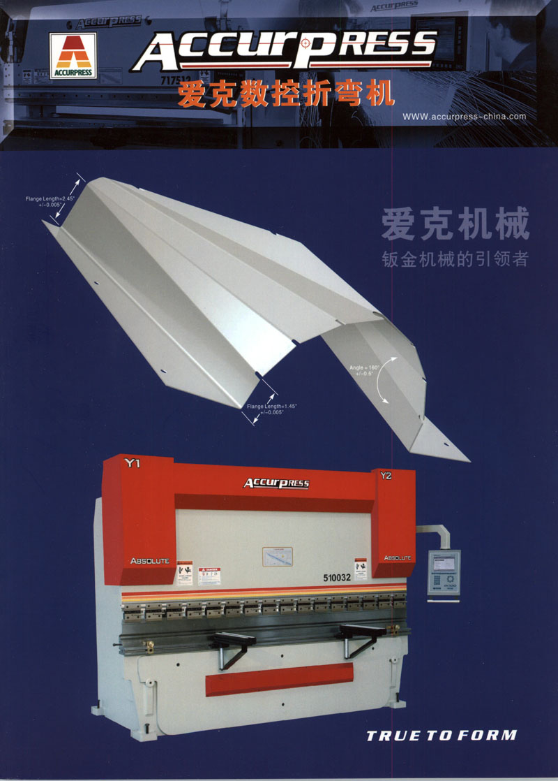 Accurpress 愛克(蘇州)機(jī)械有限公司是一家具有三十多年歷史的專業(yè)生產(chǎn)高質(zhì)量折彎機(jī)、剪板機(jī)的北美著名企業(yè)??偛课挥诿绹?,在美國和加拿大共擁有五家工廠和一家研發(fā)中心。愛克已在北美銷售了數(shù)萬臺機(jī)器,占據(jù)了40%以上的市場,連續(xù)十多年成為北美的銷量冠軍。2003年,愛克公司在蘇州太倉獨(dú)資成立了中國工廠,由此,開始在中國大批量生產(chǎn)高質(zhì)量的數(shù)控折彎機(jī)和剪板機(jī)。經(jīng)過幾年的不斷發(fā)展,愛克公司在中國取得了極大的成功,產(chǎn)品遍布各地、各行業(yè)。超過1500家用戶,3000臺愛克機(jī)器的安裝和使用就是廣大中國用戶對愛克的信任和支持。我們將秉承真誠合作、共同成長;科技創(chuàng)新、服務(wù)大眾的企業(yè)理念,繼續(xù)為廣大用戶提供行業(yè)中最優(yōu)產(chǎn)品和最佳服務(wù)。