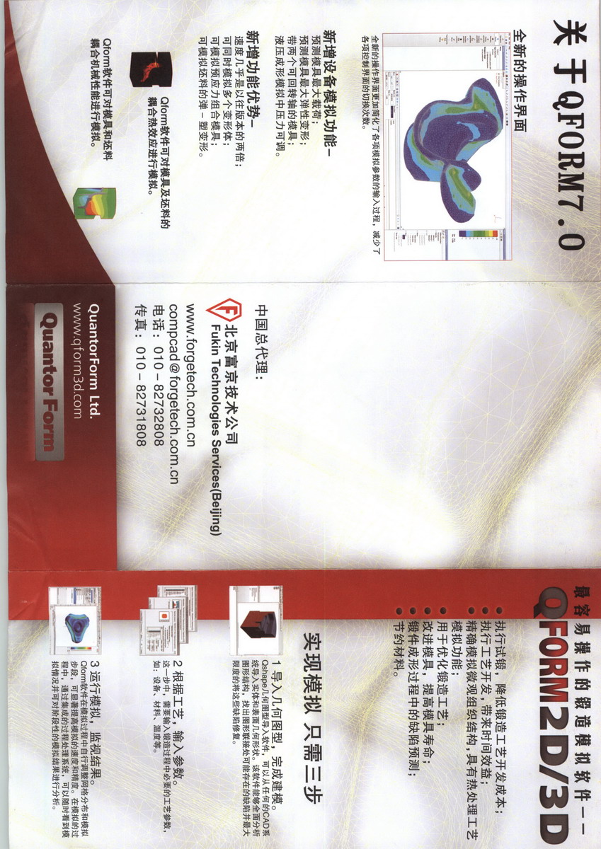俄羅斯QuantorForm公司研發(fā)的鍛壓模擬軟件 。目前發(fā)布的最新版本為VX8.1。² 完整的鍛造工藝解決方案和完善的技術服務QFORM鍛造模擬軟件集成QFORM2D和QFORM3D模擬仿真于一身,提供了金屬體積成形的完整鍛造工藝模擬解決方案,幫助用戶解決鍛造工藝設計和優(yōu)化,模具的設計制造等技術難題,通過模擬金屬成型過程中出現(xiàn)的問題,改善并優(yōu)化模具設計制造。QFORM鍛造工藝模擬分析軟件幾乎涵蓋金屬體積成形的的鍛造工藝:如自由鍛、冷鍛、溫鍛、熱鍛、粉末成形、鐓鍛成型、型材擠壓、輥鍛、楔橫軋、輪輾、輾環(huán)等;并考慮模具壽命、熱處理工藝、微觀組織預測、工藝鏈全過程模擬分析;適合所有鍛造材料(鍛鋼、鍛鋁、銅合金、高溫合金)與設備的鍛造工藝模擬分析,并包括完備的材料數(shù)據(jù)庫和設備數(shù)據(jù)庫。QFORM鍛造工藝模擬分析適應的設備有液壓機(鍛造液壓機、模鍛液壓機、擠壓液壓機)、機械壓力機(曲柄壓力機、熱模鍛壓力機、平鍛機、冷鍛機)、鍛錘(空氣錘、液壓錘、對擊錘、多錘頭壓機)、螺旋壓力機(摩擦螺旋壓力機、電動螺旋壓力機、液壓螺旋壓力機、離合式螺旋壓力機)和旋轉成形設備(楔橫軋機、斜軋機、輾擴機、輥鍛機、旋轉鍛造機)。