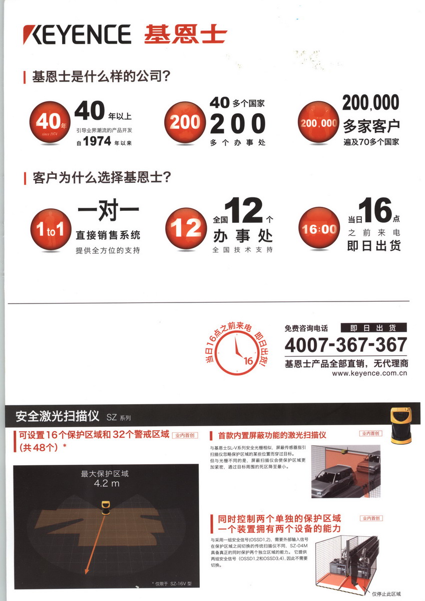 隨著工業(yè)自動化方面的迅速發(fā)展,KEYENCE作為傳感器和測量儀器的主要供應(yīng)商,在不斷開發(fā)制造更新、更可靠的產(chǎn)品,以滿足各制造行業(yè)的需求。除高品質(zhì)的產(chǎn)品外,在技術(shù)上訓(xùn)練有素的KEYENCE銷售隊伍還提供全方位的服務(wù),從解決應(yīng)用問題、技術(shù)銷售支持到對用戶的要求做出快速反應(yīng)。KEYENCE一直致力于支持廣大用戶,并協(xié)助他們成為其行業(yè)中的佼佼者。