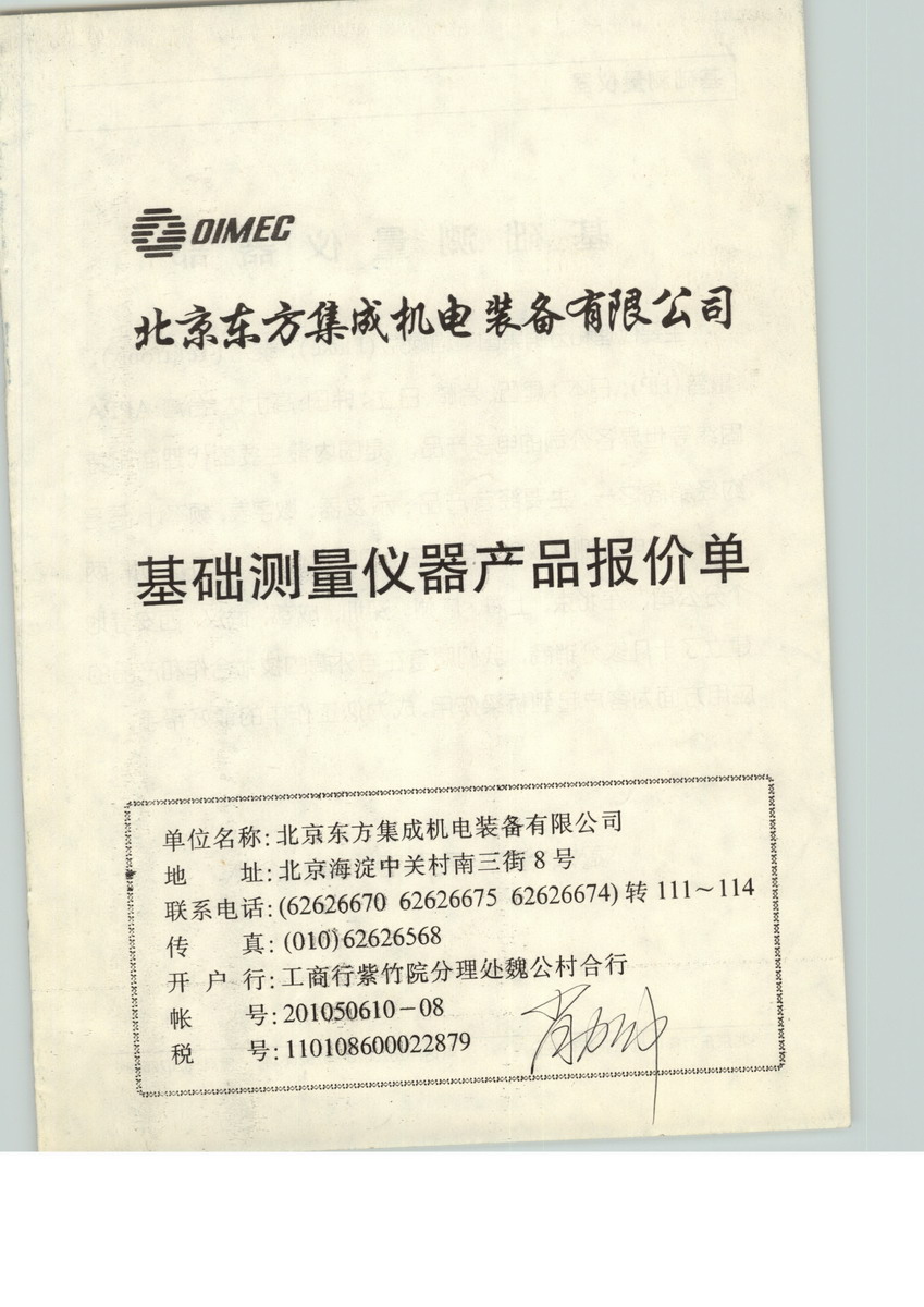 北京東方集成機(jī)電裝備有限公司(簡(jiǎn)稱 OIMEC),是中國(guó)科學(xué)院東方科工貿(mào)集團(tuán)的下屬企業(yè)之一。在集團(tuán)多元化的業(yè)務(wù)中,OIMEC的主營(yíng)業(yè)務(wù)方向是為電子、通訊、工業(yè)控制、半導(dǎo)體工業(yè)、石化工業(yè)領(lǐng)域提供廣泛的測(cè)試、測(cè)量?jī)x器、儀表、工具和設(shè)備,同時(shí)為以上用戶提供生產(chǎn)線系統(tǒng)集成,通訊網(wǎng)絡(luò)集成和無線計(jì)算機(jī)網(wǎng)絡(luò)接入方案。 OIMEC目前年?duì)I業(yè)規(guī)模近2億元人民幣, 是FLUKE、HP、TEKTRONIX、WAVETEK、NICOLET、KENWOOD、MOTOROLA、GLENAYRE、RDC、GRE、TTC、AMETEK、HIOKI 等世界著名廠商的中國(guó)合作伙伴。