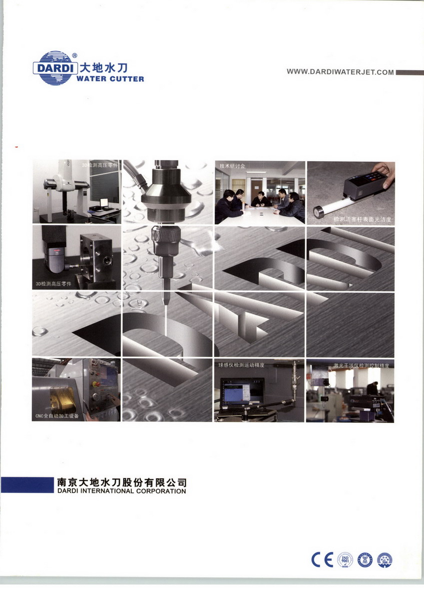 南京大地水刀股份有限公司是目前中國(guó)居于領(lǐng)先地位、具有全球影響的一家專業(yè)從事超高壓水射流技術(shù)應(yīng)用產(chǎn)品研發(fā)、生產(chǎn)、銷售及技術(shù)服務(wù)的高新技術(shù)企業(yè)。公司主產(chǎn)品“超高壓數(shù)控萬(wàn)能水切割機(jī)”,又稱“水刀”,是世界上最新的冷切割新工藝和先進(jìn)制造裝備。它兼有機(jī)電一體化、超高壓及水射流技術(shù)與CNC自動(dòng)化、自動(dòng)檢測(cè)與補(bǔ)償、計(jì)算機(jī)輔助設(shè)計(jì)和制造、機(jī)器人應(yīng)用等諸多領(lǐng)域的高新技術(shù),是具有世界水平的高科技產(chǎn)品?!八丁币云洹盁o(wú)所不能”的特質(zhì)又稱“神奇水刀”。其獨(dú)特冷切割工藝和精細(xì)加工的優(yōu)良品質(zhì)隨著新型制造業(yè)的需求和新材料應(yīng)用領(lǐng)域的飛速拓展,已為愈來(lái)愈多的行業(yè)所采用。以大地水刀為首的中國(guó)水刀已成為面向世界市場(chǎng)的新型裝備產(chǎn)業(yè),而大地水刀以其最具性價(jià)比優(yōu)勢(shì)已成為世界知名品牌。大地水刀凝聚多年研發(fā)、生產(chǎn),約2000家用戶的經(jīng)驗(yàn)與技術(shù)沉淀,擁有與超高壓數(shù)控水切割機(jī)、超高壓水清洗相關(guān)的專利四十余項(xiàng)。主編中國(guó)第一部《超高壓水切割機(jī)》行業(yè)標(biāo)準(zhǔn)和國(guó)家標(biāo)準(zhǔn)。大地公司生產(chǎn)的“400MPa超高壓水切割機(jī)”榮獲江蘇省機(jī)械裝備行業(yè)首屆專利新產(chǎn)品金獎(jiǎng)、江蘇省機(jī)械工業(yè)科技進(jìn)步一等獎(jiǎng);DWMC水切割加工中心獲國(guó)家級(jí)重點(diǎn)新產(chǎn)品、江蘇省高新技術(shù)產(chǎn)品稱號(hào),獲南京市科技進(jìn)步一等獎(jiǎng);并于2009年承擔(dān)“江蘇省科技成果轉(zhuǎn)化項(xiàng)目”。公司超高壓數(shù)控萬(wàn)能水切割機(jī)已實(shí)現(xiàn)系列化、批量化生產(chǎn),并通過(guò)ISO9001和CE認(rèn)證?!俺邏簲?shù)控萬(wàn)能水切割機(jī)”被認(rèn)定為江蘇省、南京市名牌產(chǎn)品,“大地”商標(biāo)也被認(rèn)定為江蘇省、南京市著名商標(biāo)。公司產(chǎn)品不僅在國(guó)內(nèi)銷售領(lǐng)先,且遠(yuǎn)銷美國(guó)、加拿大、中東、東南亞等三十多個(gè)國(guó)家和地區(qū),迄今已有約2000臺(tái)公司生產(chǎn)產(chǎn)品在電力及新能源、石化、高鐵、汽車、醫(yī)療、紡織、食品、化工、印刷、包裝、工程機(jī)械、船舶修造、電子、交通、建筑、裝潢裝飾;金屬、碳纖維、玻璃纖維、化纖、皮革、塑料、布匹、紙張、玻璃、陶瓷、石材等廣闊的領(lǐng)域使用。