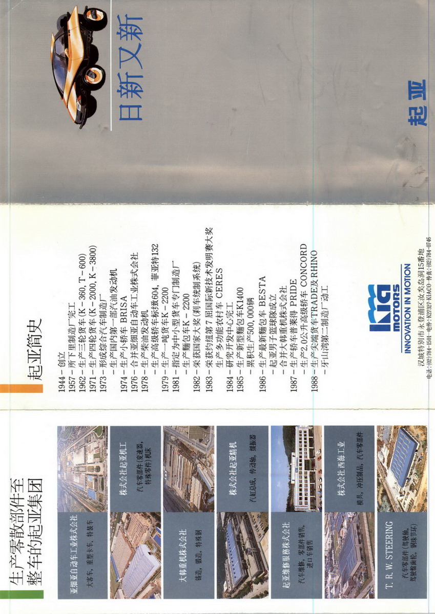 起亞即起亞汽車(chē)集團(tuán),是韓國(guó)最早的汽車(chē)制造商。2000年與現(xiàn)代集團(tuán)合并成立現(xiàn)代起亞汽車(chē)集團(tuán)?,F(xiàn)代起亞汽車(chē)集團(tuán) 是世界產(chǎn)量第五大的汽車(chē)生產(chǎn)商。擁有完善的乘用車(chē)和商用車(chē)生產(chǎn)流水線,330萬(wàn)平方米廠房的牙山灣工廠和79萬(wàn)平方米的所下里工廠,具有年產(chǎn)一百萬(wàn)輛汽車(chē)的生產(chǎn)力。通過(guò)在180多個(gè)國(guó)家的銷(xiāo)售網(wǎng)絡(luò)進(jìn)行銷(xiāo)售。2014年11月,由于夸大部分車(chē)型的燃油里程,現(xiàn)代汽車(chē)及其子公司起亞被美國(guó)當(dāng)局處以總計(jì)1億美元民事罰款,為此類(lèi)問(wèn)題有史以來(lái)最大的罰款,并被沒(méi)收價(jià)值2億美元的排放信用積分。起亞(KIA)汽車(chē)公司是韓國(guó)最早的機(jī)動(dòng)車(chē)制作商,成立于1944年。起亞的車(chē)系基本上已經(jīng)覆蓋了從轎車(chē)到SUV、MPV的各種車(chē)型,其中很多車(chē)型多次獲得各項(xiàng)殊榮。2013年財(cái)富世界500強(qiáng)排行榜排名第252位。