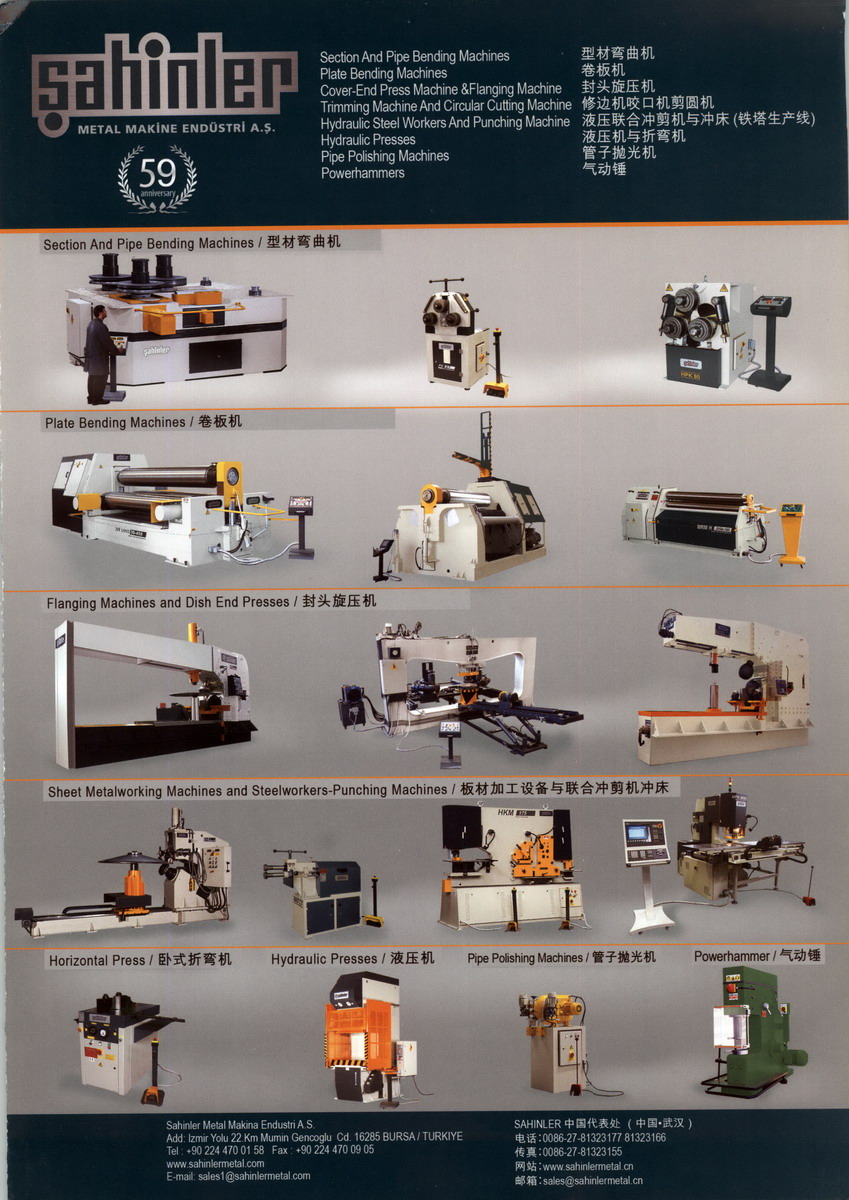 Sahinler is established in 1953 and reorganized to stock shared company in 1980, In the help of the technical support from Spanish MONDRAGON CORPOILACION COOPERATIVA (MCC)-SORALUCE, Sahinler manufactures machines in good reliability, high efficiency, precise machining and low maintenance cost.Sahinler has been ranged into the top manufacturer for metalworking machines. We have set service centers in Europe, North America, Asia Pacific around the world. Sahinler products are famous for “German quality”, we sell our own brand and also many factories from Italy, Germany, USA etc. are provided with OEM service from us.Sahinler still continue today to serve the global metalworking industry needs with its 1+3 production plants and 400 staff in 140,000 m2 closed production area. We has exported to 85 countries worldwide.Sahinler China Representative Office: Hubei Sahinler Technologies Co., Ltd. Sahinler China, Serve China.Obtained many certificates including CE TüV label (Germany), IQNET International Certificate Alliance (Switzerland) and BV International Inspection Certificate (France).