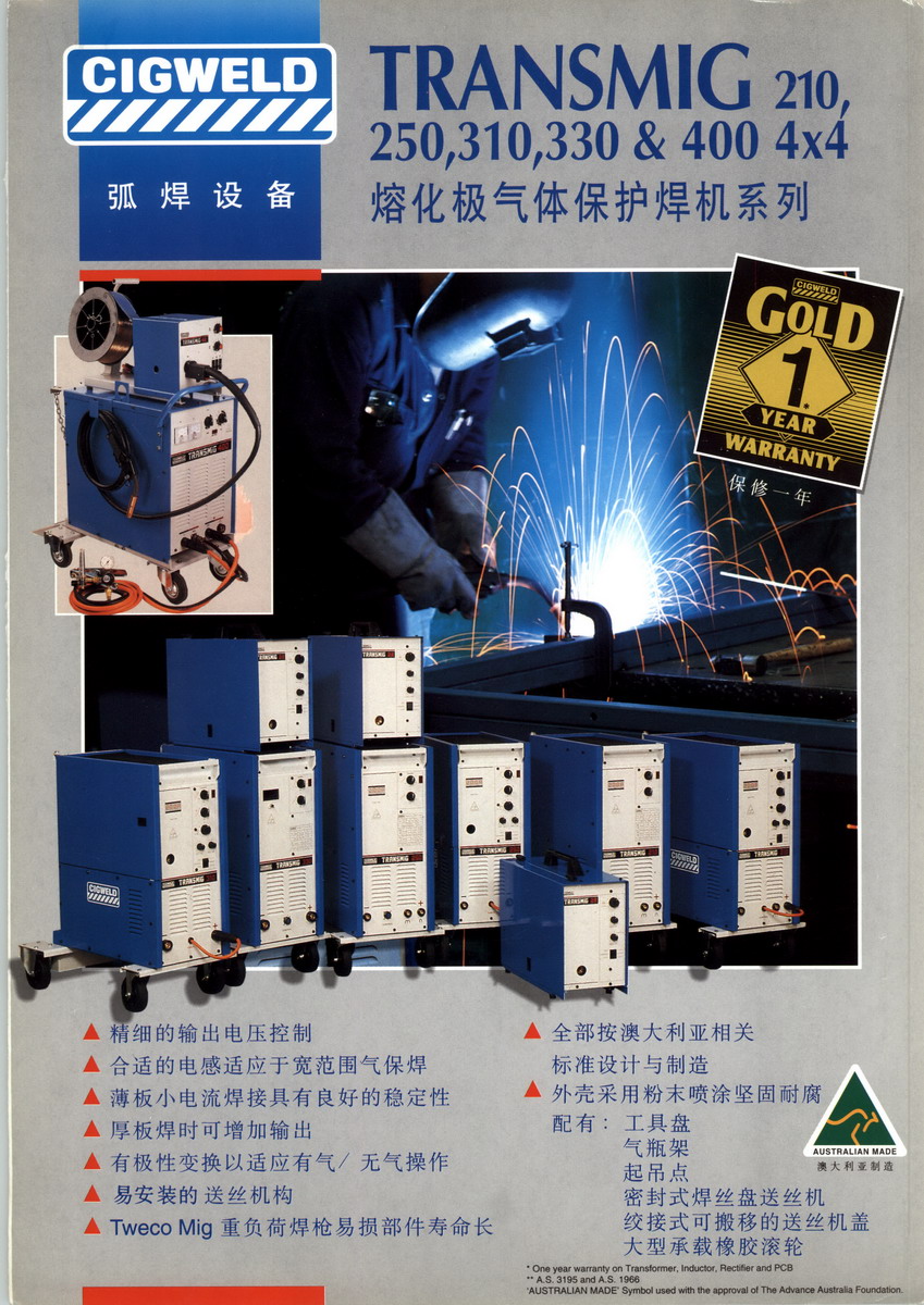 CIGWELD是澳大利亞和亞洲地區(qū)市場(chǎng)上的知名品牌,CIGWELD生產(chǎn)的安全勞防產(chǎn)品給操作者提供*保護(hù)。CIGWELD在澳大利亞和東南亞投放的全自動(dòng)生產(chǎn)線生產(chǎn)的氣體切割設(shè)備、焊接電源和焊接材料等產(chǎn)品性能優(yōu)異,品質(zhì)一流,而且CIGWELD的減壓器,醫(yī)用氣體,加濕器,流量計(jì)等產(chǎn)品亦成為了市場(chǎng)上的熱銷產(chǎn)品。
