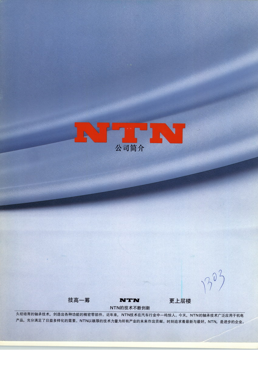 NTN東洋軸承株式會(huì)社是世界綜合性精密機(jī)械制造廠家之一,該公司于1918年成立于日本,總部設(shè)在大阪市西區(qū),在日本國(guó)內(nèi)有11家制作所,25家營(yíng)業(yè)所和3家研究所;在國(guó)外擁有20家獨(dú)資生產(chǎn)廠、2家研究所和48家營(yíng)業(yè)所。NTN的生產(chǎn)、銷(xiāo)售、技術(shù)各個(gè)部門(mén)努力不懈的開(kāi)拓與深化自己的專(zhuān)業(yè)領(lǐng)域,同時(shí)又相互有機(jī)地結(jié)合起來(lái)?,F(xiàn)任董事長(zhǎng)為鈴木泰信。