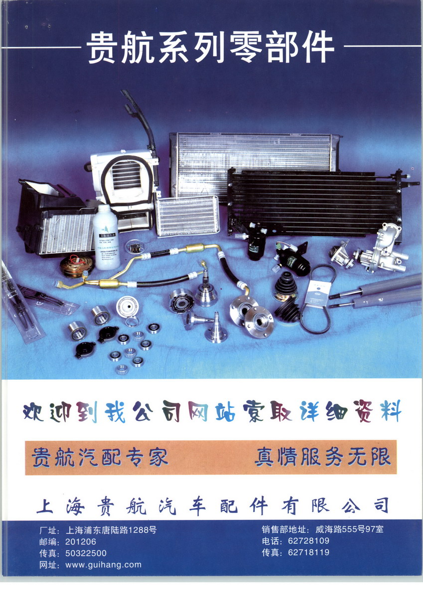 上海貴航汽車配件有限公司是一家集開發(fā)、生產(chǎn)、銷售為一體的現(xiàn)代化綜合性企業(yè),目前已形成汽車空調(diào)系統(tǒng)、冷卻系統(tǒng)、軸承系統(tǒng)、底盤件、傳動帶、雨刮片等幾大類貴航系列產(chǎn)品。公司以品種多、質(zhì)量優(yōu)、價格低、服務好為營銷宗旨,在激烈的市場競爭中,享有較高的知名度和市場占有率。經(jīng)過多年運作,目前公司已經(jīng)在全國各地發(fā)展和建立了幾百家代理商,在汽車維修市場中有較高份額,并且還在不斷擴大和發(fā)展中,使之形成一個全國性的分銷服務體系,以便為全國各地的客戶提供及時、便利的服務。與此同時,公司運用多年來生產(chǎn)科研成果進一步改進工藝,充實測試設備,按照ISO9001質(zhì)量保證體系的內(nèi)容和要求保證一流的產(chǎn)品和一流的服務。面對新世紀挑戰(zhàn)和機遇,上海貴航汽車配件有限公司決心不斷完善自我和超越自我,以優(yōu)質(zhì)的產(chǎn)品和優(yōu)良的服務進一步加強同國內(nèi)外同行通力合作,共同開拓市場,服務全國,走向世界。