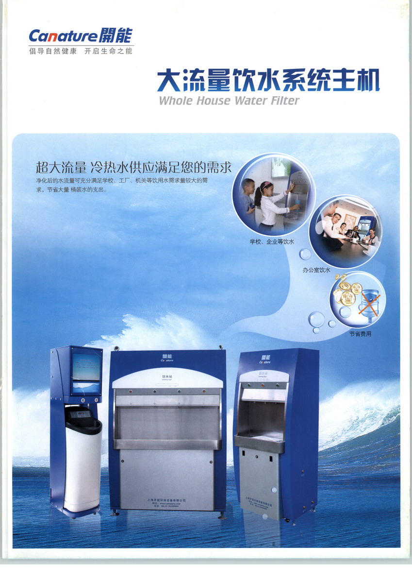 開能集團是由知名企業(yè)家瞿建國先生發(fā)起組建的,投資金額高達數(shù)億人民幣的國際專業(yè)水處理設備跨國制造企業(yè)。開能集團是美國水質(zhì)協(xié)會會員,是世界最大的家庭用中央凈水系統(tǒng)和軟水機制造企業(yè)之一。位于上海浦東工業(yè)園區(qū)有近百畝的現(xiàn)代化生產(chǎn)基地,并擁有近40000平方米的廠房。 開能集團與GE-OSMONICS公司、KDF公司和FPI公司等世界著名企業(yè)合作, 共同設立研發(fā)中心,致力于家居環(huán)保與健康設備的研發(fā)、制造與推廣。中心專門研制開發(fā)適合中國環(huán)境的凈水機產(chǎn)品及燃氣、燃木和電壁爐產(chǎn)品,不斷為改善中國人的生活品質(zhì)而努力。公司獲有美國NSF頒發(fā)的ISO9001質(zhì)量體系認證,開能牌凈水機也獲得了國家衛(wèi)生部頒發(fā)的衛(wèi)生許可證。 開能集團將國際最先進的工藝技術以及安全而高效的過濾材料引入中國,與GE-OSMONICS公司、KDF公司和REGENCY公司等世界著名企業(yè)聯(lián)合,致力于居家健康產(chǎn)品的制造、服務與推廣,專門研制開發(fā)適合中國環(huán)境的凈水機、軟水機產(chǎn)品及燃氣、燃木和電壁爐產(chǎn)品,不斷為改善中國人的生活品質(zhì)而努力。 開能集團的經(jīng)營理念是:“倡導健康自然,開啟生命之能”。開能集團為您提供的不僅僅是值得信賴的產(chǎn)品,持續(xù)完善的售后服務,更是一種保護自然,回歸自然及健康環(huán)保的生活方式。 企業(yè)宗旨:致力于居家健康產(chǎn)品的制造、服務與推廣。 企業(yè)文化:誠實 和諧 勤奮 敬業(yè)。