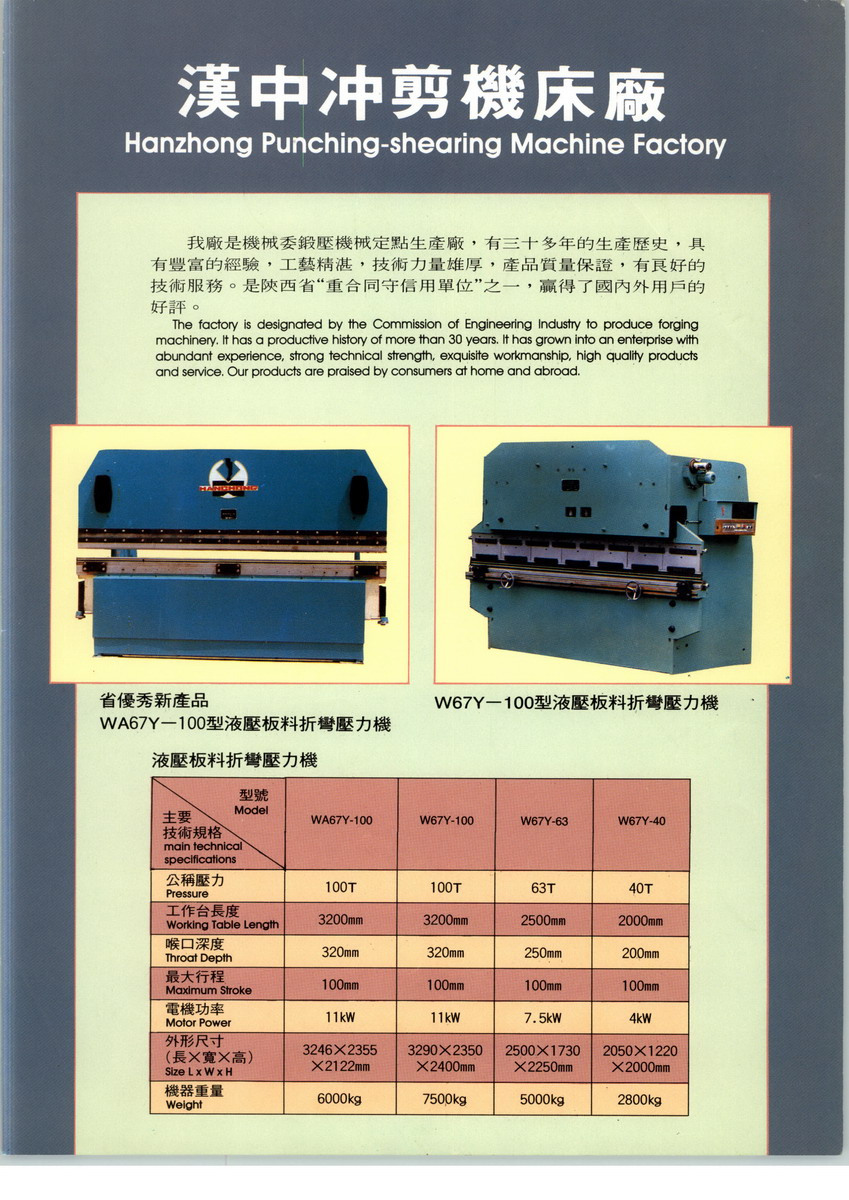 陜西漢中漢江沖剪機床廠辦公室地址位于自古就有“天府之國”美譽的漢中,漢中 西郊徐家田壩(郵編:723000)(行政區(qū)號:610702),工廠成立以來發(fā)展迅速,業(yè)務不斷發(fā)展壯大我工廠主要經營剪板機,折彎機,飼料機,金屬帶鋸氧氣,鋼錠,鋼件制造。,我們有最好的產品和專業(yè)的銷售和技術團隊,工廠座機電話是2229708,我工廠是漢中金屬切削機床廠黃頁行業(yè)內知名企業(yè),如果您對我工廠的產品服務有興趣,期待您在線留言或者來電咨詢愿與社會各界同仁攜手合作,謀求共同發(fā)展,繼續(xù)為新老客戶提供最優(yōu)秀的產品和服務。工廠與多家漢中金屬切削機床廠黃頁零售商和代理商建立了長期穩(wěn)定的合作關系,品種齊全、價格合理,企業(yè)實力雄厚,重信用、守合同、保證產品質量,以多品種經營特色和薄利多銷的原則,贏得了廣大客戶的信任。