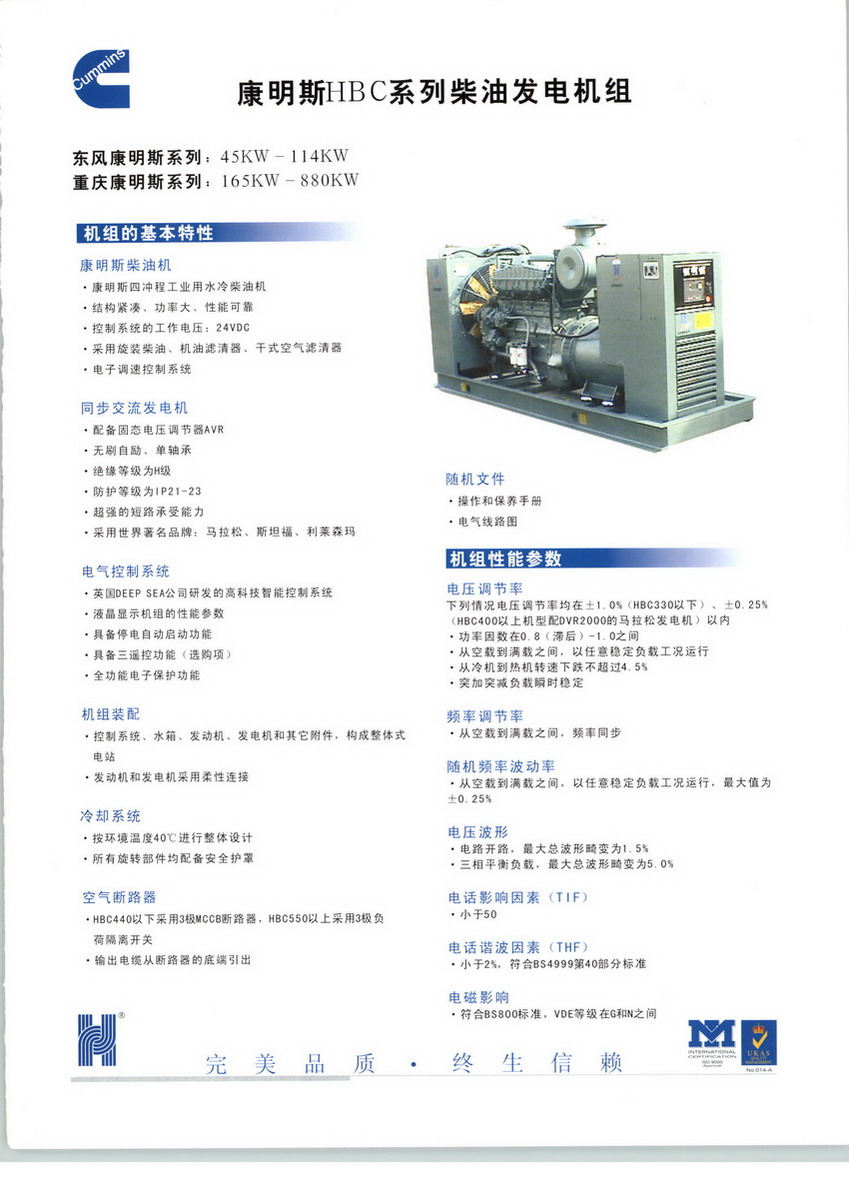 康菱投資(中國(guó))有限公司始創(chuàng)于1992年,是中國(guó)地區(qū)專(zhuān)業(yè)經(jīng)營(yíng)柴油發(fā)電機(jī)組的先驅(qū)之一。專(zhuān)業(yè)從事柴油發(fā)電機(jī)組的生產(chǎn)、銷(xiāo)售、安裝、維修和服務(wù)。經(jīng)過(guò)多年的發(fā)展,目前康菱投資(中國(guó))有限公司在東莞地區(qū)擁有占地近30,000平方米的發(fā)電機(jī)組生產(chǎn)基地。在全國(guó)范圍內(nèi)擁有近30家分公司和辦事處,近30家銷(xiāo)售一級(jí)代理商。公司現(xiàn)有員工1000多人,其中管理人員120多名,技術(shù)人員90多名,生產(chǎn)人員150多名,售后服務(wù)人員280多名,銷(xiāo)售人員400多名。東莞新工廠位于中國(guó)最具發(fā)展?jié)摿Φ母咝录夹g(shù)產(chǎn)業(yè)開(kāi)發(fā)區(qū)— 東莞市松山湖生態(tài)高科技工業(yè)園區(qū),占地面積20,000平方米,年生產(chǎn)能力10,000臺(tái)/套。目前,公司已和多家國(guó)際跨國(guó)公司結(jié)成戰(zhàn)略合作伙伴關(guān)系。與已有40多年發(fā)電機(jī)組生產(chǎn)歷史的新加坡PANEXP集團(tuán)合作,進(jìn)口CUMMINS、PERKINS等系列發(fā)電機(jī)組整機(jī);與世界五大發(fā)電機(jī)組制造商之一的VISA集團(tuán)合作,代理銷(xiāo)售原裝進(jìn)口CUMMINS、PERKINS、MTU、DEUTZ、MAN等系列發(fā)電機(jī)組。公司和康明斯、鉑金斯、斗山大宇、斯坦福、馬拉松、利萊森瑪、上柴股份等國(guó)際、國(guó)內(nèi)著名的發(fā)動(dòng)機(jī)、發(fā)電機(jī)生產(chǎn)廠商建立了長(zhǎng)期友好的合作關(guān)系,并成為他們?cè)谥袊?guó)地區(qū)指定的OEM成套商。公司積極開(kāi)展了多項(xiàng)新產(chǎn)品的研發(fā)工作,其中與中國(guó)南車(chē)集團(tuán)資陽(yáng)柴油機(jī)廠和中國(guó)北車(chē)集團(tuán)永濟(jì)電機(jī)廠聯(lián)合開(kāi)發(fā)的HBY系列火車(chē)機(jī)車(chē)柴油發(fā)電機(jī)組,具有功率大、性?xún)r(jià)比高、安全可靠、使用維護(hù)方便等優(yōu)點(diǎn),是缺電地區(qū)、廠礦、醫(yī)院、房地產(chǎn)等用戶(hù)的最佳選擇之一。公司于2000年10月通過(guò)了英國(guó)UKAS ISO:9000質(zhì)量體系認(rèn)證,于2004年底通過(guò)了ISO:9001-2000版的換版認(rèn)證2002年獲得廣東省科技廳頒發(fā)的民營(yíng)科技企業(yè)稱(chēng)號(hào);2005年5月獲得了中華人民共和國(guó)信息產(chǎn)業(yè)部的電信入網(wǎng)許可證;2005年7月通過(guò)了國(guó)家內(nèi)燃機(jī)發(fā)電機(jī)組質(zhì)量監(jiān)督檢驗(yàn)中心的質(zhì)量檢查;2005年10月榮獲中國(guó)中輕產(chǎn)品質(zhì)量保障中心頒發(fā)的合格證書(shū)及牌匾。2006年2月榮獲了2005年度東莞市萬(wàn)江區(qū)優(yōu)秀民營(yíng)科技企業(yè)稱(chēng)號(hào)。多年來(lái),對(duì)品質(zhì)、價(jià)格、服務(wù)三方面的和諧統(tǒng)一是全體康菱人的執(zhí)著追求,并換來(lái)了眾多客戶(hù)的盛情回饋!衷心感謝中國(guó)電信、中國(guó)移動(dòng)、中國(guó)石油、中海殼牌、中國(guó)煙草、中國(guó)國(guó)家投資公司、中國(guó)水利部、中國(guó)出入境檢驗(yàn)檢疫局、中國(guó)國(guó)家軍委、中國(guó)國(guó)家公安部、美的集團(tuán)、浪莎集團(tuán)、中興通訊、富力地產(chǎn)、鹽城高速;美國(guó)沃爾瑪、高露潔、箭牌、喜來(lái)登、百事可樂(lè)、德?tīng)柛?、德?guó)DHL、法國(guó)湯姆遜、芬蘭NOKIA、瑞士LONZA、日本National、Canon、SANYO、TOYOTA、HONDA、韓國(guó)三星、韓國(guó)艾利和、泰國(guó)正大集團(tuán) 、臺(tái)灣富士康集團(tuán)、臺(tái)灣光寶集團(tuán)等知名客戶(hù)對(duì)我們的支持和信賴(lài)!