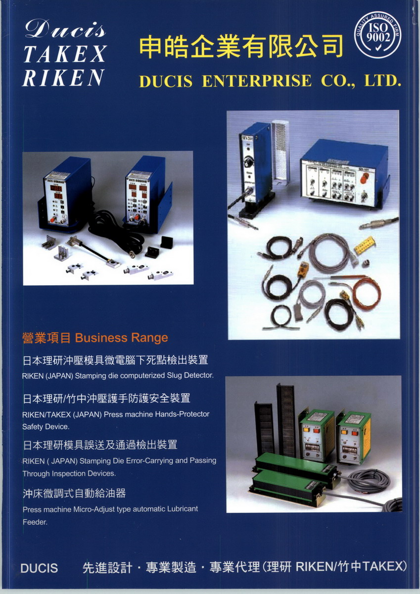 申皓企業(yè)有限公司於民國(guó)七十八年成立至今已有二十二年,公司參考先進(jìn)國(guó)家技術(shù),專業(yè)設(shè)計(jì)、製造生產(chǎn)與銷售沖床周邊自動(dòng)化系列的機(jī)械設(shè)備。 主要生產(chǎn)微電腦下死點(diǎn)檢出器、模具誤送及通過檢出裝置、沖床護(hù)手防護(hù)安全裝置、不銹鋼附自動(dòng)電磁閥給油桶。更是日本二大光電產(chǎn)品理研、竹中之代理商: 日本理研主要產(chǎn)品:沖床光電護(hù)手、荷重監(jiān)視器、誤送檢知、下死點(diǎn)檢知 日本竹中主要產(chǎn)品:沖床光電護(hù)手 申皓企業(yè)有限公司之產(chǎn)品行銷於世界各地,以優(yōu)良的品質(zhì)、熱忱、高效、優(yōu)質(zhì)的售後服務(wù) 而受到廣大客戶群的技持與愛護(hù),為滿足消費(fèi)者之需求及方便性,公司於東莞、昆山等地 設(shè)立分公司及辦事處,以便及時(shí)服務(wù)客戶。長(zhǎng)久以來,因產(chǎn)品品質(zhì)的不斷改進(jìn)及定期 為客戶做產(chǎn)品檢修與服務(wù),得到客戶的大力支持與高度信賴,造就申皓在商業(yè)界的良好形 象。與此同時(shí) ,產(chǎn)品的品質(zhì)也贏得了客戶的一致好評(píng)。