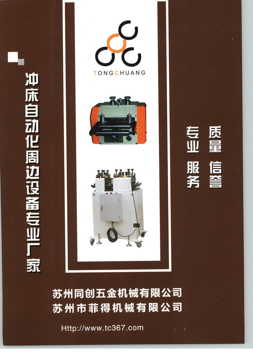 蘇州同創(chuàng)五金機械有限公司系專業(yè)生產、銷售、維修沖床周邊自動化整廠設備、環(huán)保型沖床隔音箱及各類沖床電氣系統(tǒng)、變頻器檢修廠家。沿用臺灣專業(yè)技術及先進經營和管理理念,同時敝司從業(yè)人員具有良好素質和豐富經驗,能及時不斷滿足客戶生產的需求。我司承諾:我司所銷售的產品能始終如一維持高品質,并定期為所售出設備做檢修與服務。同創(chuàng)能為各類電子及五金沖壓廠商提供相關及適用的理想的沖床周邊自動化整廠設備??旖莸姆?,24小時隨時待命搶修,技術精湛的服務人員能及時解決各類疑難機械雜癥。優(yōu)良的品質及完善的售后服務為敝司之基本理念,敝司將沿承“誠信經營,品質第一,專業(yè)服務,有續(xù)發(fā)展”的經營方針。長期專業(yè)為客戶服務,同時與客戶互利互榮,共同發(fā)展,也是全體員工共同遵循的企業(yè)政策。這些方針和政策將激勵同創(chuàng)人不懈努力,超強突破,為廣大客戶提供一個全新“五星級”的高層人性化機械服務。